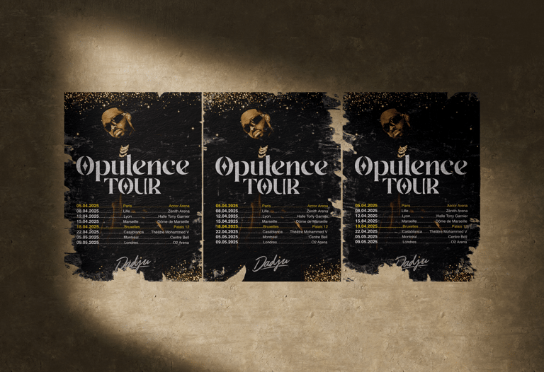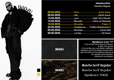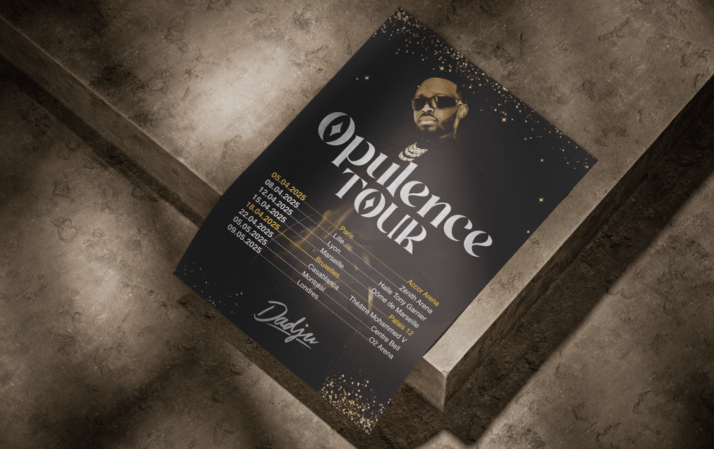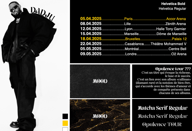 Création d’une affiche percutante pour une tournée imaginée de l'artiste "Dadju", alliant composition visuelle forte et effets graphiques développés de manière autodidacte.