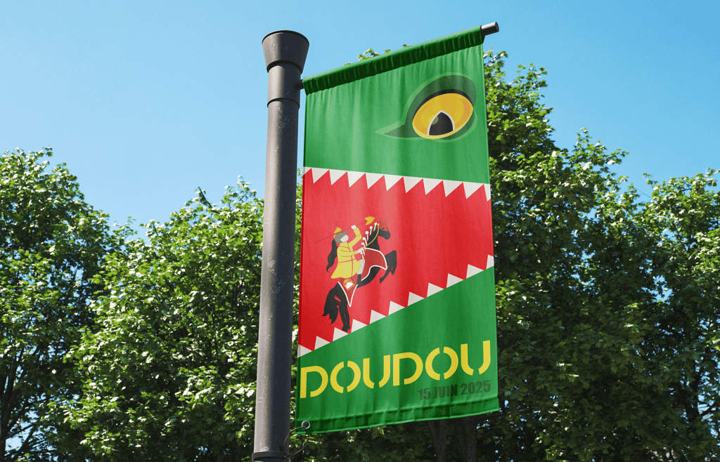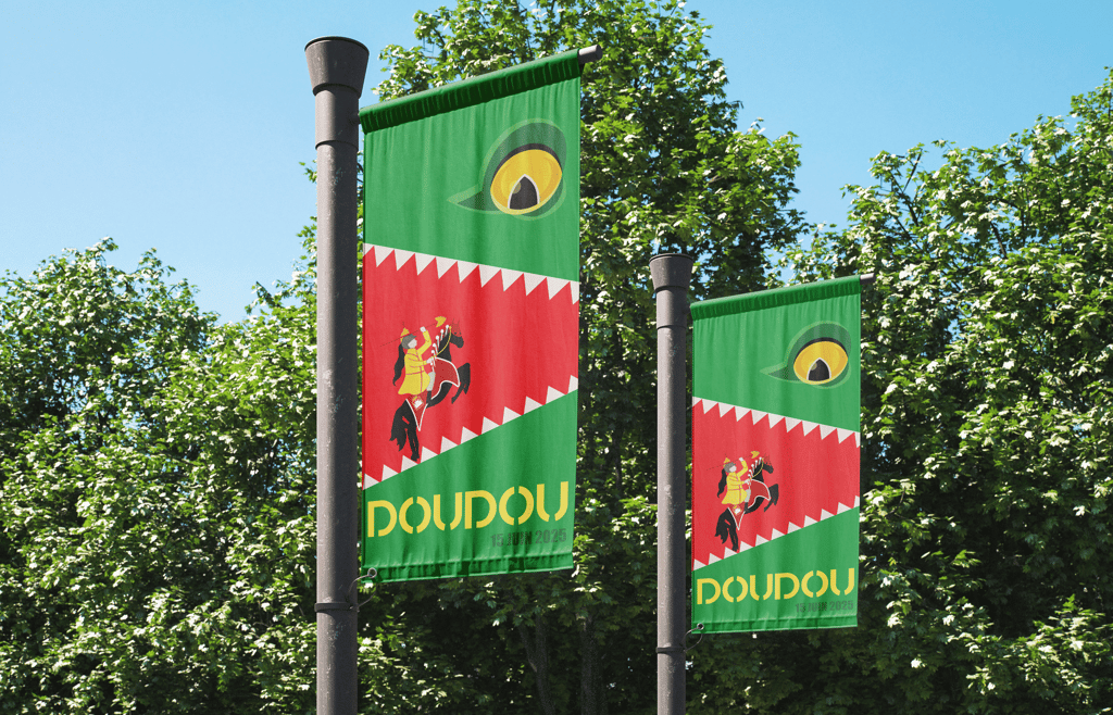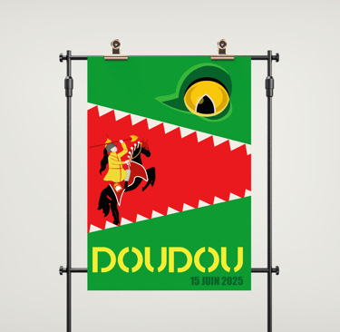 Conception graphique pour le concours municipal "Le Doudou illustré", une initiative culturelle portée par la Ville de Mons et Télé MB. Ce projet visait à créer l'identité visuelle officielle de la Ducasse 2025 et le design des t-shirts destinés aux jeunes participants de la corde du Petit Lumeçon.
